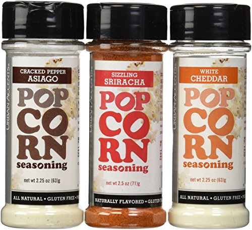 - Product Name: Urban Accents All Natural Gluten Free Premium Popcorn Seasoning Variety Pack - Cracked Pepper Asiago, Sizzling Sriracha, White Cheddar